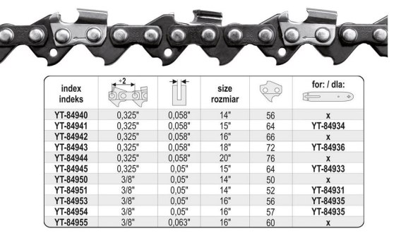 YATO ŁAŃCUCH TNĄCY DO PILARKI 40cm (16") 3/8" YATO