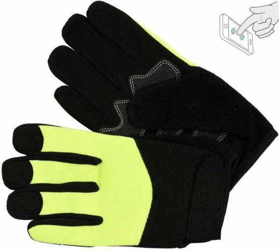 Rękawice robocze wykonane z czarnej skóry syntetycznej Amara, oraz dzianiny bawełnianej w kolorze czarnym i żółtym. Specjalny materiał umożliwia obsługę ekranów dotykowych urządzeń typu smartfon czy tablet. Dodatkowe wzmocnienia w miejscach najbardziej narażonych na przetarcia znacznie przedłużają żywotność i chronią przed powstawaniem odcisków.