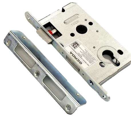 Zamek wpuszczany, przeznaczony do stosowania w drzwiach zewnętrznych i wewnętrznych