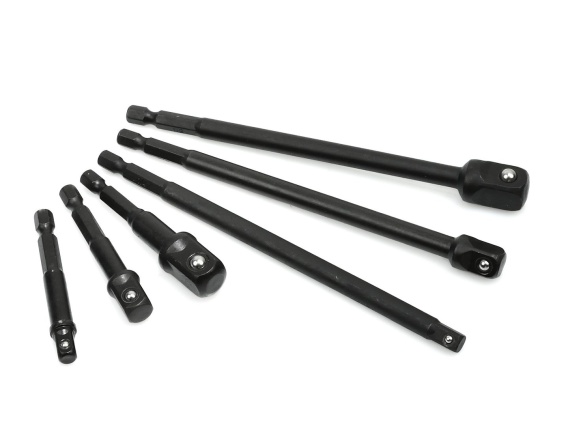 6-elementowy zestaw przedłużek udarowych z mocowaniem HEX. Przedłużki wyposażono w zabezpieczenie kulkowe po stronie nasadki. W zestawie: