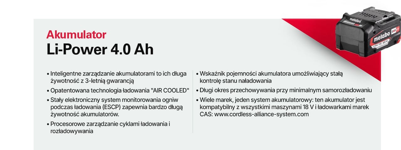 Poznaj wyjątkową serię narzędzi akumulatorowych Metabo, idealnych zarówno dla wymagających hobbystów, jak i profesjonalistów z różnych branż. Wybierz wydajne rozwiązania oparte na uniwersalnym systemie CAS (Cordless Alliance System). Używaj jednego rodzaju akumulatora do wszystkich narzędzi. Tnij, wierć, i szlifuj bez ograniczeń – teraz w specjalnej ofercie!